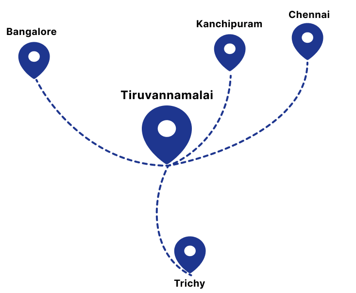 Enjoy stress-free travel fromTiruvannamalai with our outstation cab service, offering one-way and round-trips.